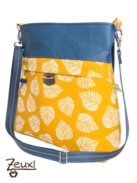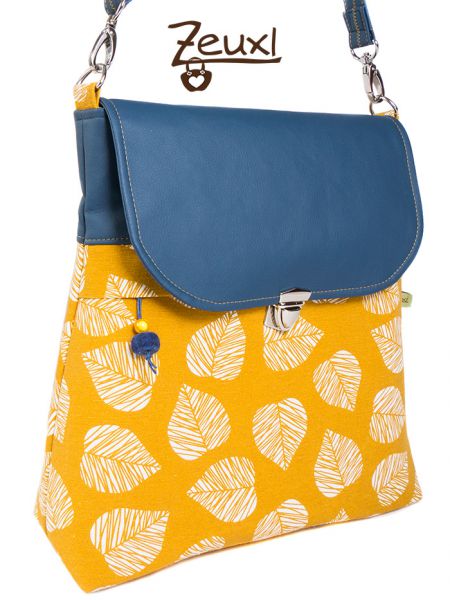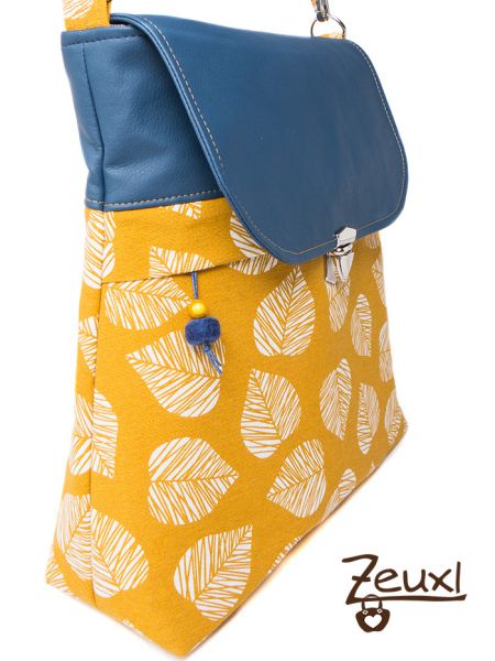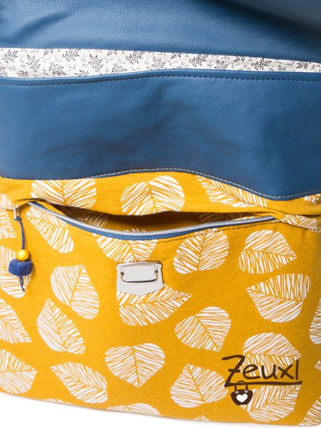 Hier entschied ich mich für blaues Kunstleder, welches ich mit senffarbenen Canvas kombinierte. Für die Nähte auf dem Kunstleder verwendete ich ein Garn in der Farbe des Canvas um einen schönen Kontrast zu schaffen. Das wirkt gleich noch mal flotter finde ich.
