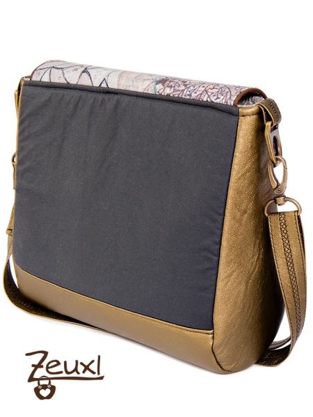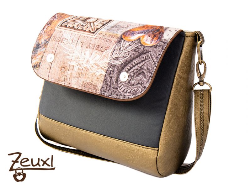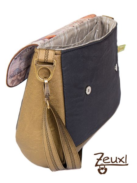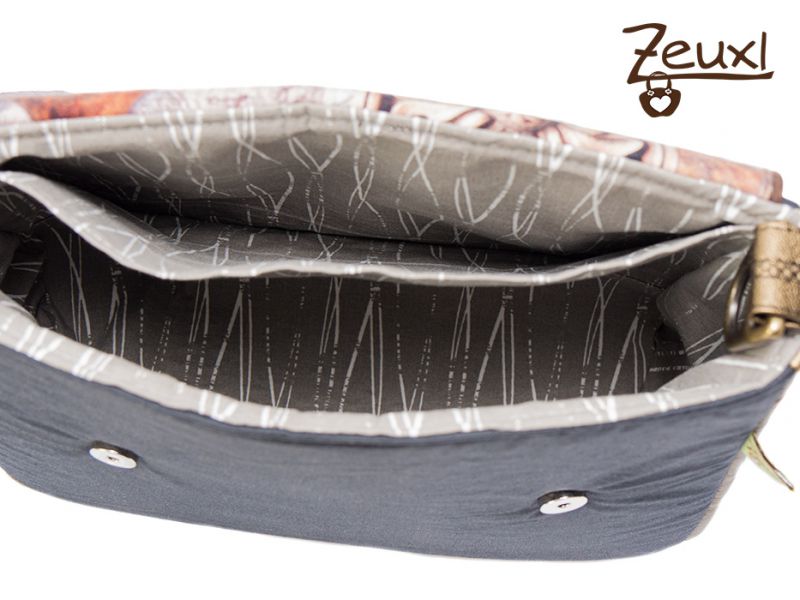 Die Alexia eignet sich super, um verschiedene Materialien oder Farben zu kombinieren. So verwendete ich für die Klappe außen und innen einen gemusterten Canvas in gedeckten Farben. Verschlossen wird die Klappe mit zwei Magnetverschlüssen.