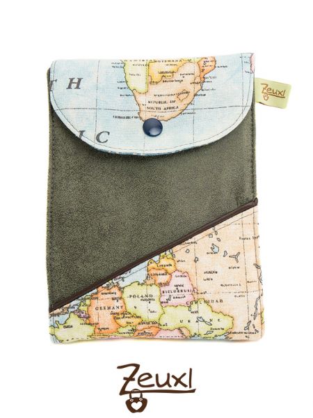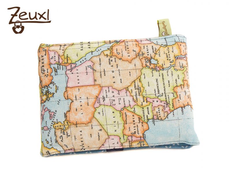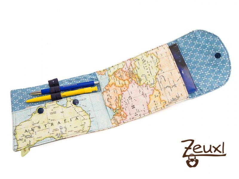 Ich vernähte mal wieder ein Stück des schönen Weltkartenstoffs, den ich damals für meine Zirkeltasche nutzte. Kombiniert habe ich mit einem Polsterbezugsstoff, der sich toll anfühlt. Meine Weltkarten Almut ist schon fleißig in Benutzung und wirklich praktisch.