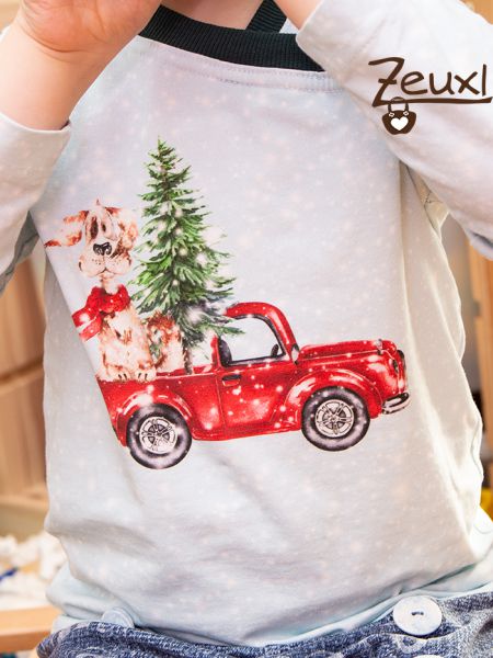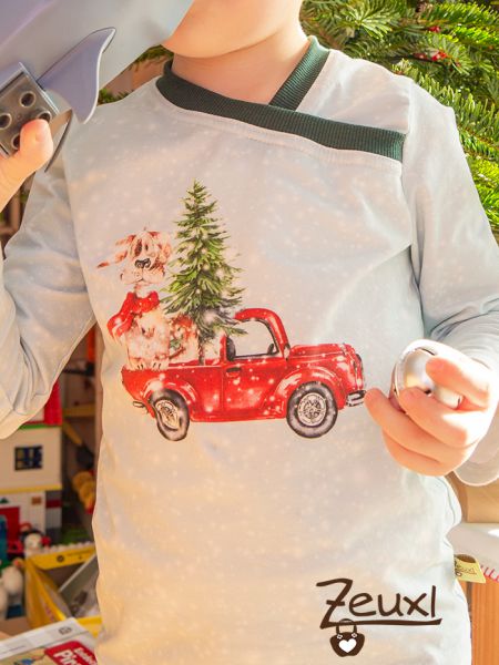 Nun konnte der Bub seinen Winterhund ganz stolz an Weihnachten tragen und ich musste ihn doch nicht auf das nächste Jahr vertrösten. Sicher wird das Shirt auch die nächsten Tage und Wochen noch getragen werden, das sehe ich nicht so eng. Schließlich endet die Weihnachtszeit offiziell nicht mit den Ferien, wie es uns vom Einzelhandel oft weißgemacht wird, sondern geht noch bis zum 2. Februar. Genaugenommen handelt es sich außerdem um einen Hund, der mit einem Nadelbaum im Auto sitzt. Die Schneeflocken und der Schal des Hundes zeigen zwar, dass es sich um Winter handelt, aber so wirklich eindeutige Weihnachtsmotive sind darauf nicht zu sehen.