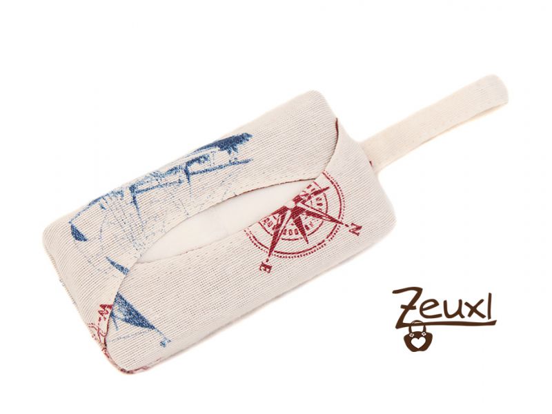 Der maritime Stoff ist nicht zu bunt und trotzdem nicht langweilig. Auf der Klappe befestigte ich als Verschluss einen Metalldruckknopf in der Mitte der Windrose.