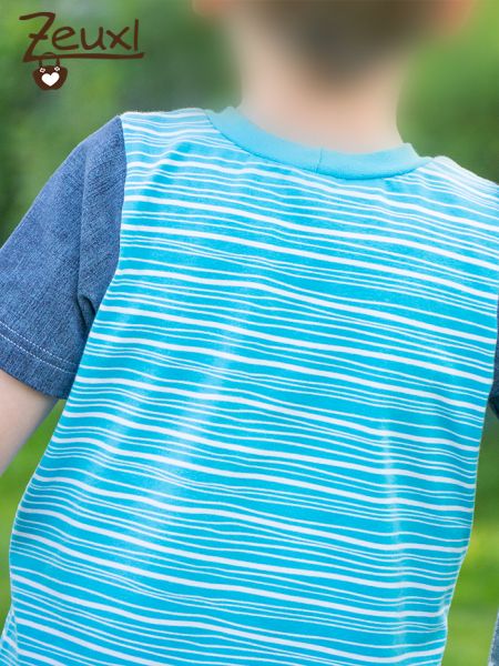 Ich nutzte den Schnitt des Mini Me (mal wieder) und kombinierte den türkis-weiß gestreiften Jersey mit einem blau melierten Jersey. Warum schon wieder ein MiniMe? Genz einfach ich mag den Schnitt und zudem lag er praktischerweise schon bereit ;-)