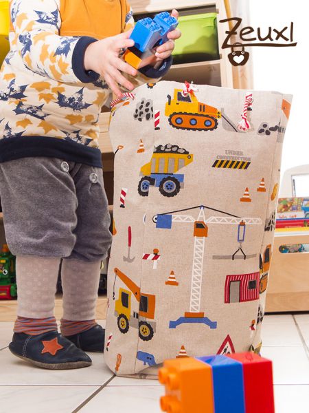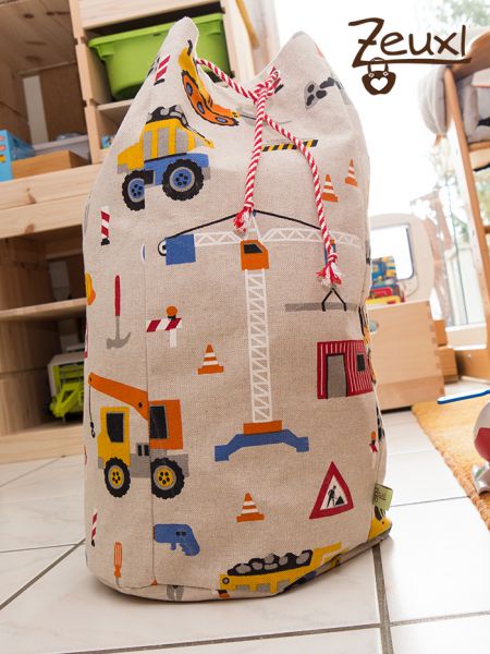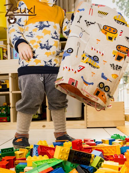 Schon letztes Jahr hatte ich mir diesen Stoff besorgt um daraus etwas für den Buben zu nähen. Für dieses Vorhaben fand ich diesen nun vom Design und der Qualität her recht passend, da der Stoff selbst schon etwas mehr Festigkeit mitbringt. Trotzdem verstärkte ich den Baustellenstoff noch mit Decovil light. So steht der Sack fast von alleine.