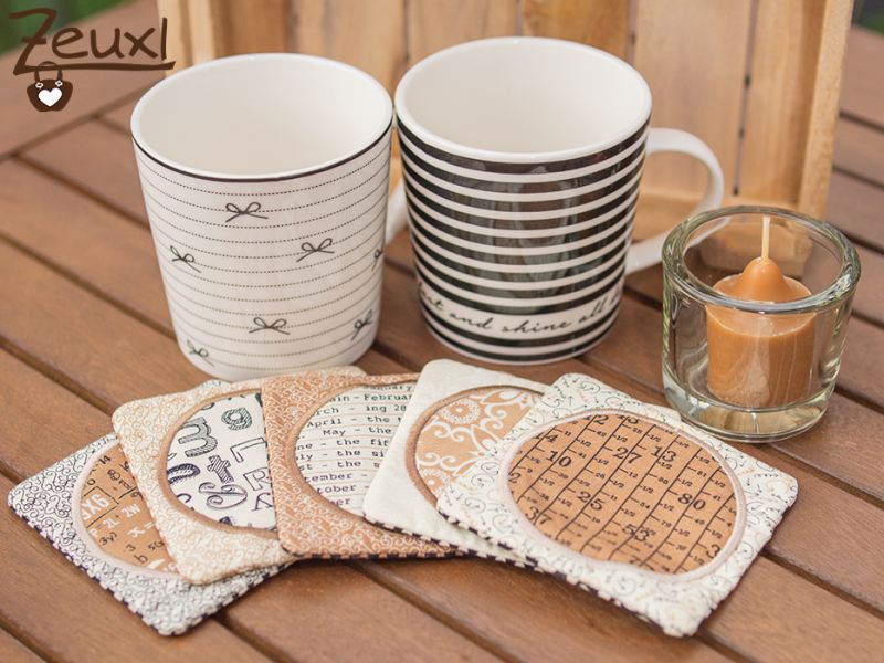 Vor einiger Zeit kaufte ich ein Patchwork-Paket mit schönen, aufeinander abgestimmten Stoffen, woraus ich (hier) auch schon mal ein Set Mug Rugs gestickt hatte. Die fand ich so schön, dass ich nochmal ein ganz ähnliches Set stickte. Ich verwendete wieder die Stickdatei von Rock Queen. Damit lassen sich die Mug Rugs ITH, also im Stickrahmen, sticken. Am Ende müssen noch die Wendeöffnungen geschlossen werden und ein harmonisches Set ist fertig.