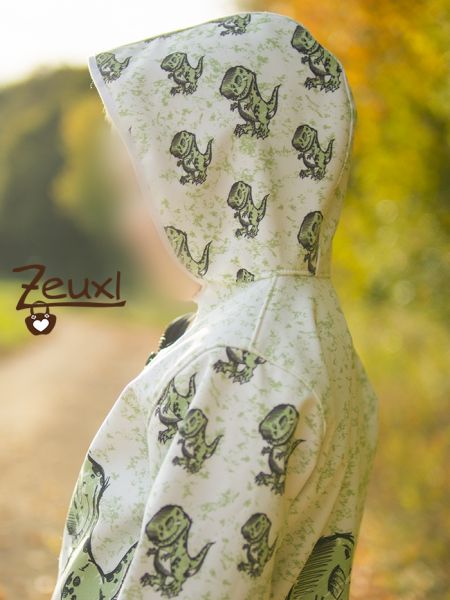 An diesem Schnitt gefällt mir besonders gut, dass das Rückenteil etwas länger ist und somit der Po zumindest ein wenig vor Feuchtigkeit geschützt wird. Ebenso praktisch ist die Kapuze, die bei leichtem Regen die Nässe abhält.
