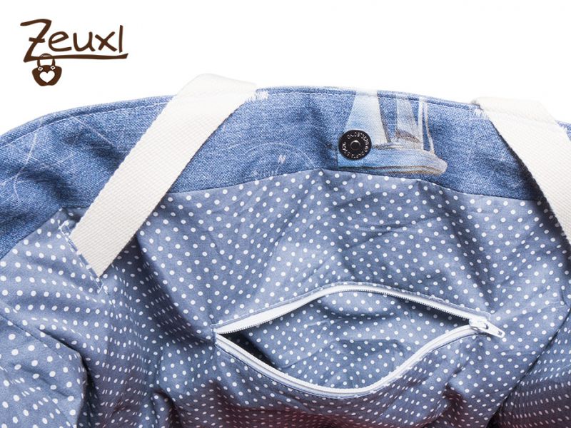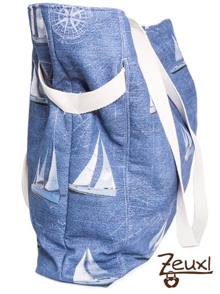 Wofür verwende ich eine relativ große Tasche, die „nur“ mit einem Magnetknopf verschlossen wird? Diese Frage stellte ich mir, als es um die Stoffauswahl für die Carry Bag ging. Irgendwie sehe ich eine Sommertasche in der Carry Bag. So eine Tasche finde ich praktisch, um alles für den Besuch im Freibad oder für ein Picknick auf dem Spielplatz unterzubringen. Daher fand ich einen maritim angehauchten Stoff ganz passend. Den Stoff mit den Segelbooten kaufte ich auf dem Stoffmarkt und bin begeistert davon. Der festere Baumwollstoff fühlt sich total weich an und hätte sich vermutlich auch für Bekleidung angeboten. Leider ist nun kaum noch was davon über...