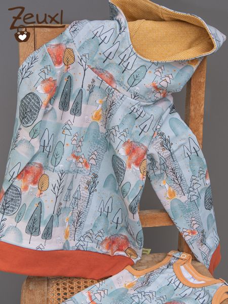 Dann entschied ich mich noch, ein Geschwisterset zu nähen. Das wunderschöne Herbstwalddesign von Lillestoff finde ich so schön und neutral, dass es sich gut für Brüderchen und Schwesterchen verwenden lässt.