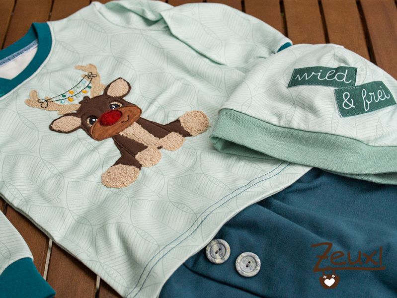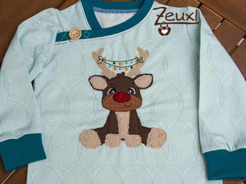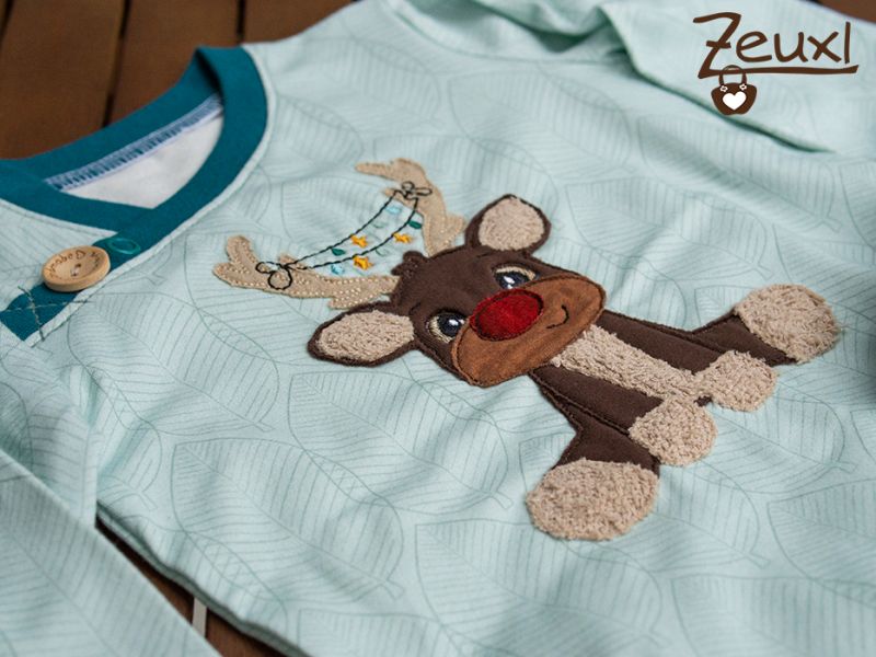 Unglaublich aber wahr – ich bin in die Weihnachtsgeschenkeproduktion gestartet! Eigentlich viel zu früh für mich. Aber ich durfte den süßen Kerl für Nadine von Fadenspiel – Stick- und Plotterdatein mit Herz probesticken und finde, dieses putzige Rentier passt besonders gut für jüngere Kinder. Genau aus dem Grund verwendete ich ihn für ein weihnachtliches Outfit in Größe 86, das verschenkt werden wird.