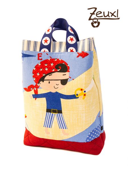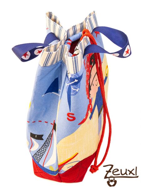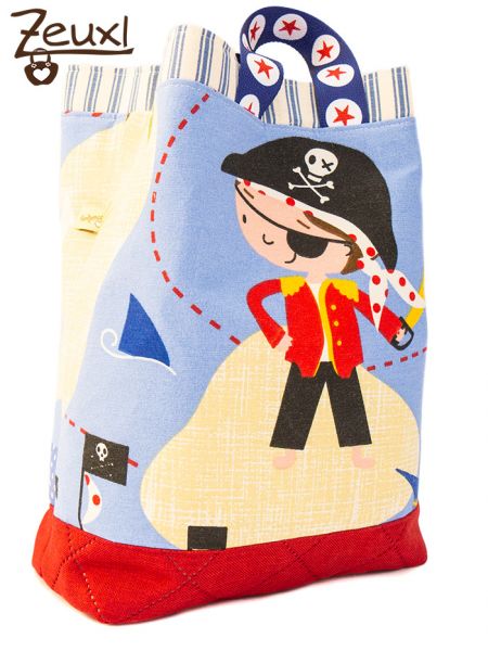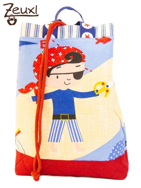 Den Canvas mit den süßen Piraten verstärkte ich mit Decovil light und innen, sowie für den Boden verwendete ich den gesteppten Taschenstoff, der von Haus aus schon ein Vlies auf der Rückseite hat. So ist der Turnbeutel wirklich schön formstabil. Sowohl auf der Vorder- also auch auf der Rückseite befindet sich ein großer Pirat.