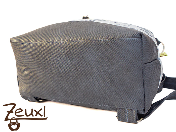 Um das Muster möglichst großflächig auf der Rucksacktasche zu erhalten verzichtete ich auf Außenfächer. Kombiniert hatte ich den Softshell mit dem strukturierten Kunstleder (wie schon bei dieser Enna), nur diesmal in blau.