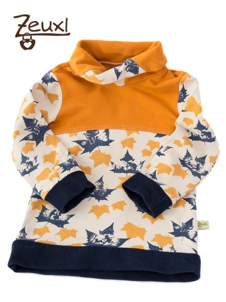 Beim Ahornblätter Flo habe ich dem tollen Motivsweat die „Hauptrolle“ überlassen. Ich finde sowohl Farben als auch die Ahornmotive – in den blauen Blättern kann man die Umrisse von Kindern erkennen – einfach nur genial.