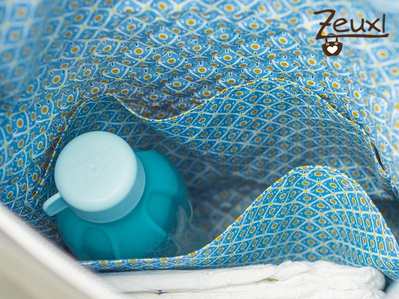 Innen ist die FoldOver recht geräumig. Bei der Probe-FoldOver nähte ich den, im Schnittmuster enthaltenen Reißverschluss mit ein. Bei der Blauen entschied ich mich für zwei Steckfächer. Das finde ich handlicher für eine Mama, die Sachen schnell zur Hand haben möchte.