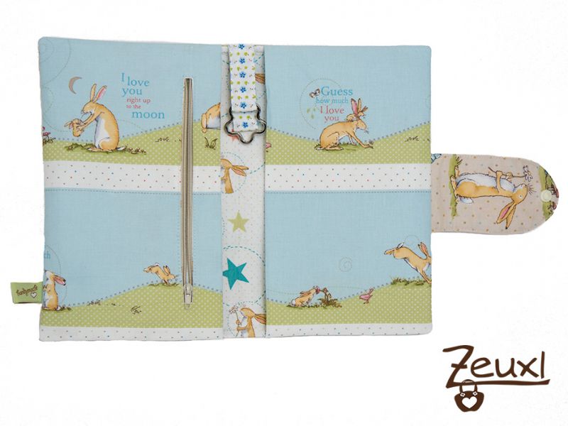 Da ich das Geschlecht des zu beschenkenden Babys nicht kenne sollte das Design doch sehr neutral ausfallen. Außerdem wollte ich den Stoff nicht kindisch-kitschig und doch irgendwie passend für ein Baby. Da ist mir der „Weißt du eigentlich wie lieb ich dich hab?“ Stoff gerade recht gekommen. Das Design ist dem gleichnamigen Buch entnommen. Es ist ein ganz wundervolles Buch. Die baldige Mama und ich kennen es durch unsere Arbeit und deswegen bin ich mir sicher, dass dieser Stoff bei ihr genauso gut ankommen wird wie bei mir.