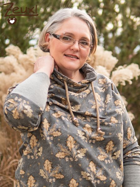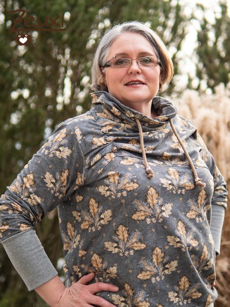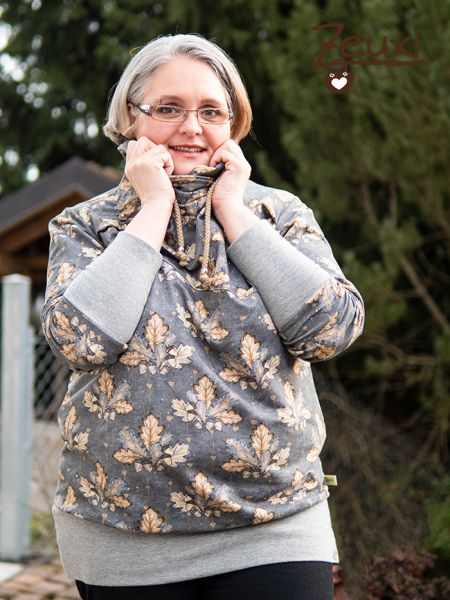 Bei Elise von Schnittrebel bin ich dann hängen geblieben. Der Schnitt mit den besonderen Falten hat mich sehr gereizt. Ja, aus dem tollen Eichelnstoff sollte dieser Hoodie werden.