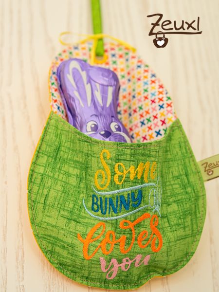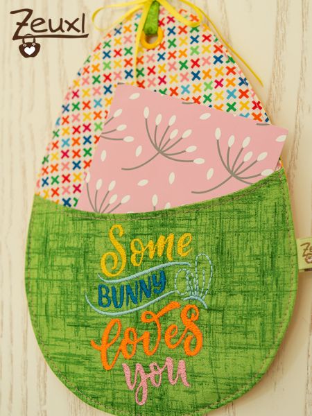 Sogar der Osterhase hat Eiki-Bedarf angemeldet. Unglaublich, oder? Schwups wird aus einer Bestecktasche ein Osterhasengeschenk-Übergabe-Ei-Dingsbums, das man auch als Wand- oder Türhänger verwenden kann.