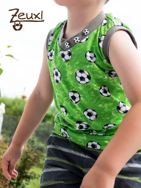 Natürlich werden liebend gerne die Fußballoutfits getragen. Glücklicherweise hatte ich auch für die richtig heißen Tage eine Shirtversion von Kalleson genäht. Den Schnitt von Lumali durfte ich im Probenähen testen und habe ihn schon hier und hier gezeigt. Dieses Mal hatte ich ihn kurzerhand ohne Passe und ärmellos genäht.