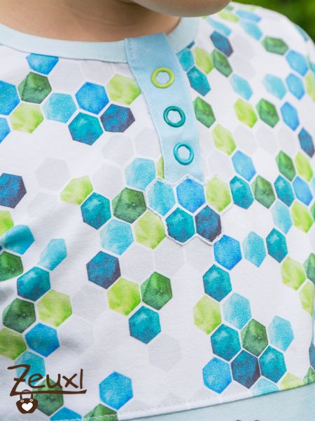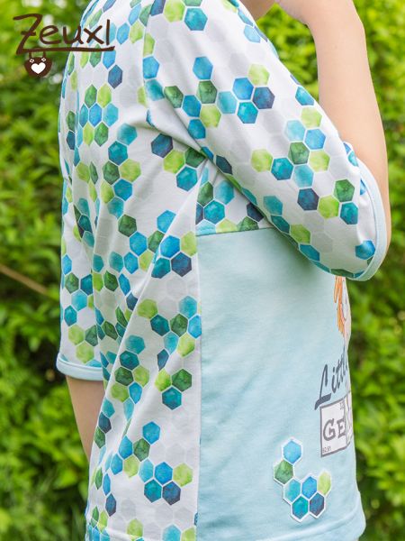 So konnte das Knopfleistenshirt doch noch tragbar gemacht werden. Dem Buben hat es so gut gefallen, dass er gleich noch mehr Waben appliziert haben wollte. Den Gefallen hab ich ihm gerne getan. Ganz bewusst liegt der Schnitt oben auf meinen Schnittmustern, ich will das unbedingt noch in Richtig hinbekommen. Diese Knopfleiste muss sich doch auch von mir bezwingen lassen. In der Beschreibung scheint es ganz logisch und klar. Also bin ich durchaus motiviert einen weiteren Versuch zu wagen.