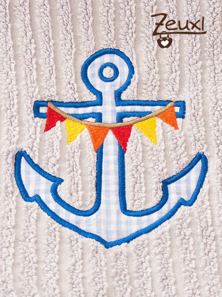 Für dieses Projekt hatte ich mir im Vorfeld auswaschbares Stickvlies für unter das Handtuch gekauft, damit es am Ende auch von hinten gut aussieht. Oben drauf kommt auch eine wasserlösliche Stickfolie, welche für Frottee (wegen der unebenen Oberfläche) empfohlen wird. Beim Anker selbst bin ich hoch zufrieden, die Schrift hätte ich mir noch etwas dichter (kann man das so sagen?) gewünscht.