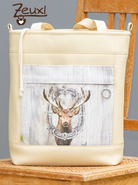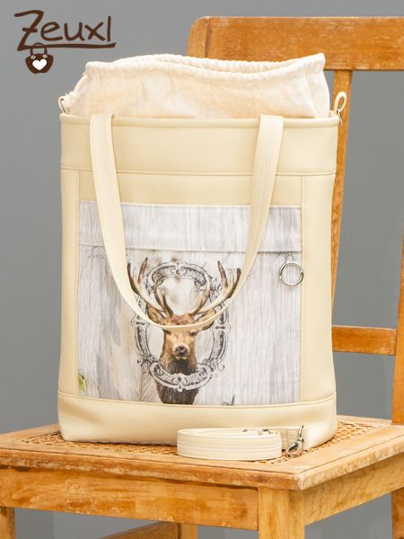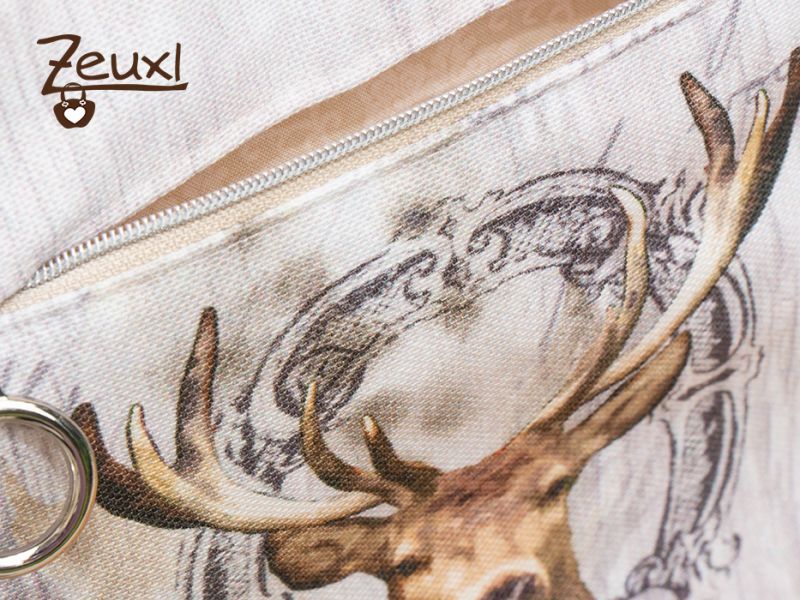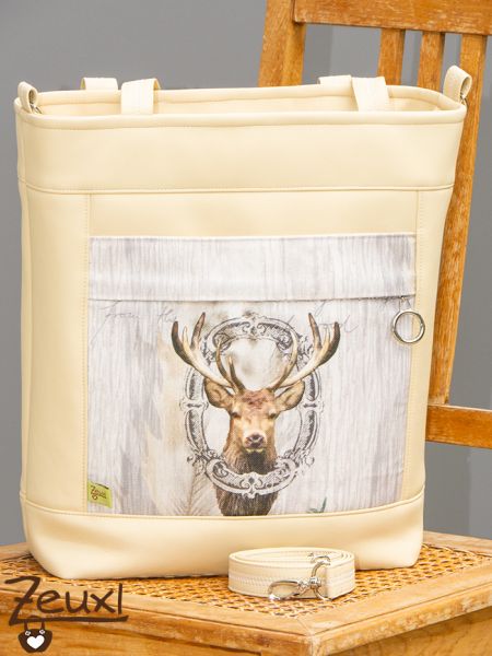 Der Hirsch (den Stoff hatte ich in der Abteilung für Vorhänge im Soffladen gefunden) kommt richtig gut zur Geltung und dabei braucht es überhaupt nicht viel vom schönen „Streichelstoff“. So können auch gut gehütete Stoffschätze für das Außenfach perfekt in Szene gesetzt werden.