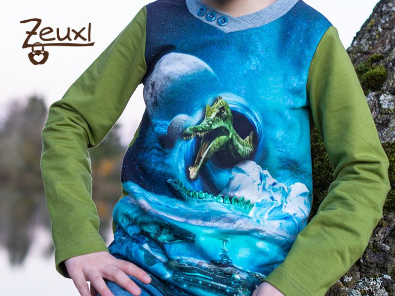 Also war es an mir, damit es eben nicht drei nahezu identische Shirts werden. Um etwas „kreative Freiheit“ zu haben, kauften wir noch den All-over-Druck und einen passenden grünen French Terry dazu. Außerdem wählte ich verschiedene Schnitte.
