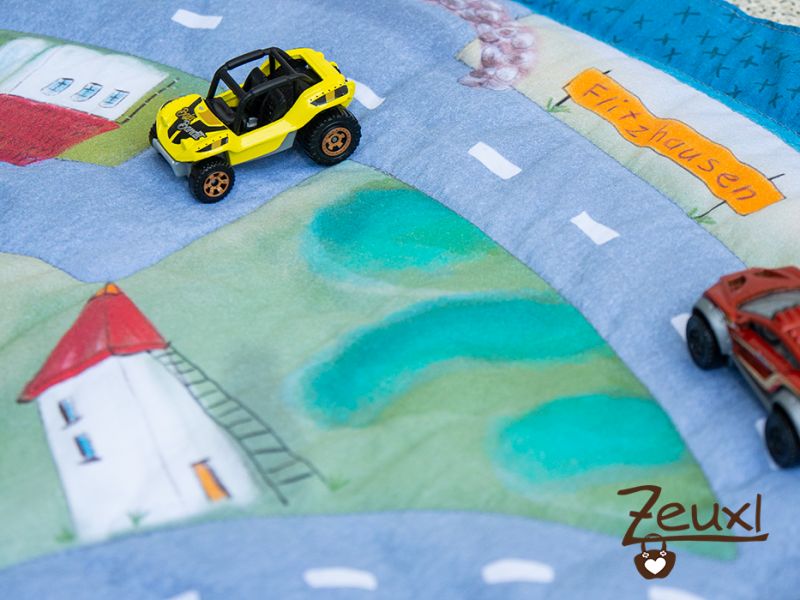 Gerne erinnere ich mich an meine eigenen Spielzeugautos zurück, so viel hatte ich damit gespielt. Nun, viele Jahre später ist es unser Bub, der seine Autos liebt. Daher hatte ich schon 2018 für ihn (hier) einen Autospielteppich genäht. Er wurde oft genutzt. Sogar jetzt wird er ab und an noch aus dem Regal geholt. Diese Liebe mit Autos oder Fahrzeugen im Allgemeinen zu spielen teilen viele Kinder mit ihm.