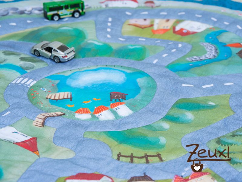 Zunächst kennzeichnet der Teppich den Spielbereich für´s Kind. Die Chancen, dass der übrige Raum weitestgehend autofrei bleibt, stehen gut. Es macht den Kindern auch gleich viel mehr Spaß die Autos auf den Straßen rum zu schieben, an den Zebrastreifen zu halten und vor den Häuschen zu parken.