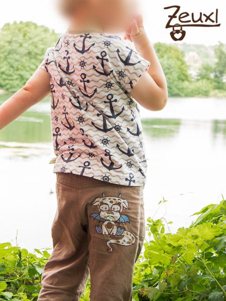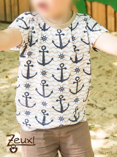 Für unseren Buben habe ich bisher schon einige T-Shirtschnitte ausgetestet. Hauptsächlich mit Ärmeln dran, ich finde ja bei einem „Bodyträger“, wie er es im Moment noch ist, schaut es unschön aus, wenn das Shirt am Arm kürzer als der Body ist. Außerdem gefallen mir diese richtig ärmellosen Achselshirts einfach überhaupt nicht – sind mir zu sehr „Unterhemd“.
