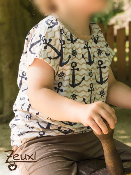 Das einfache Shirt war tatsächlich das erste, was ich aus dem neuen Buch genäht habe. Für den luftigen Schnitt wollte ich natürlich auch einen passenden Sommerstoff verwenden. Da kam mir der Rest meines hier für mich und hier als Geschenk verwendeten Ankerstoffs gerade recht.