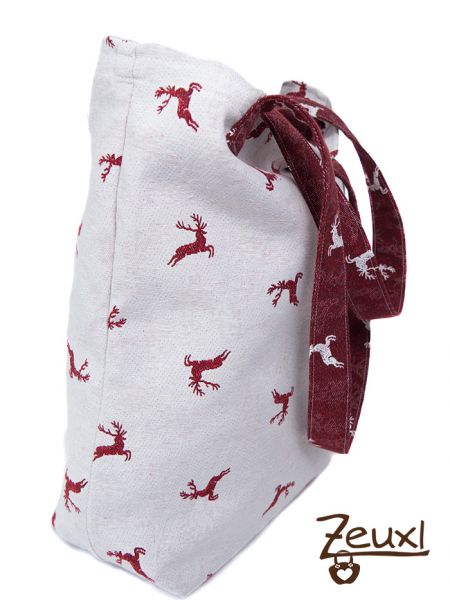 Dieser Stoff ist sogar beidseitig verwendbar, auf der Rückseite ist Rot die Hauptfarbe und die Hirsche sind hell. So ist die Tasche auch ohne Futter von Innen schön. Damit der Stoff gut wirken kann entschied ich mich für eine ganz schlichtes Schnittmuster, Omas Liebling von Farbenmix. Außerdem werden bei diesem Schnitt die Nähte doppelt genäht (französische Naht), so sind auch innen, ohne dass die Tasche gefüttert werden muss, keine offenen Kanten zu sehen - perfekt für diesen Stoff!