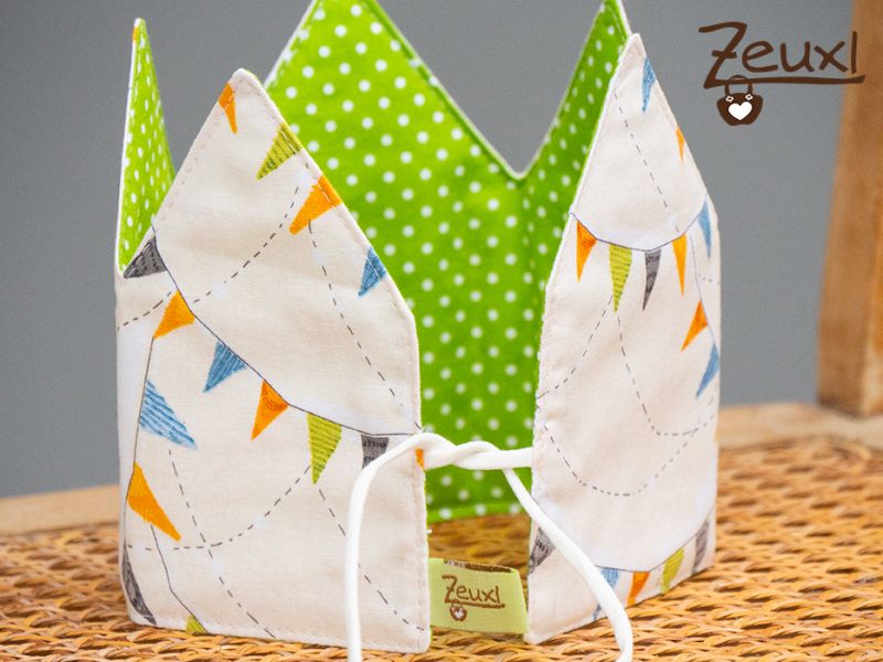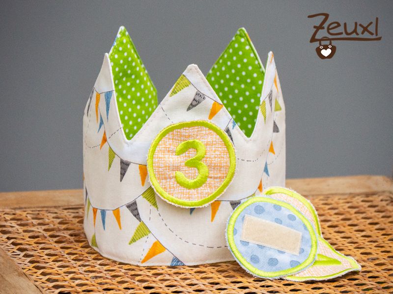 Kürzlich hatte ich schon einmal eine Geburtstagskrone (hier) genäht und verschenkt. So verwendete ich auch diesmal wieder den Schnitt vom BERNINA Blog. Ich versuchte relativ neutrale Stoffe zu verwenden, da die Krone für Mädchen und Jungs im Alter von 3 bis 6 Jahren passen sollte. Der Wimpelstoff passt perfekt zum Geburtstag finde ich und Punkte gehen sowieso immer.