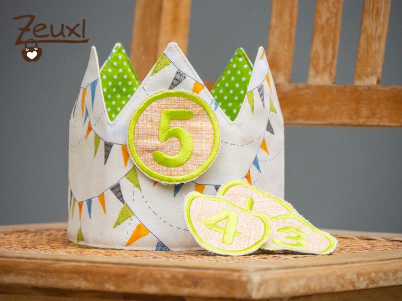 Bei meiner ersten Krone befestigte ich die Zahlen mit Snaps, diesmal probierte ich es mit Klett. Ich fand es etwas weniger aufwendig, als beim letzten Mal. Ich werde sehen wie sie den Alltagstest bestehen wird.