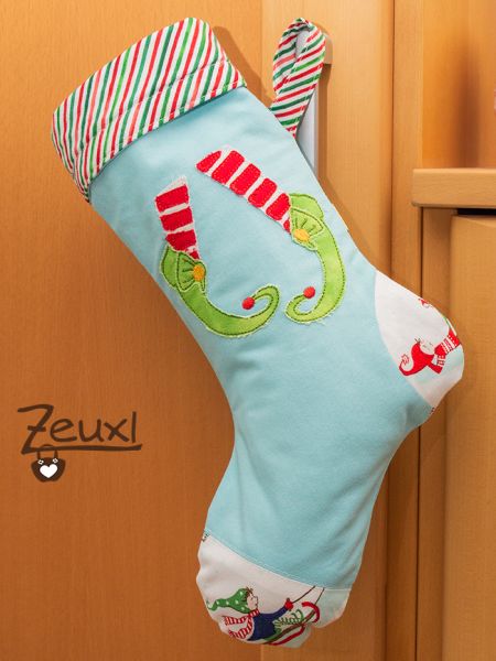 Außerdem bestickte ich noch einen Nikolausstiefel damit. Auch hier passen die Elfenstiefel gut. Für den Stiefel verwenedete ich ein Schnittmuster vom Bernina Blog, das ich leicht abänderte.
