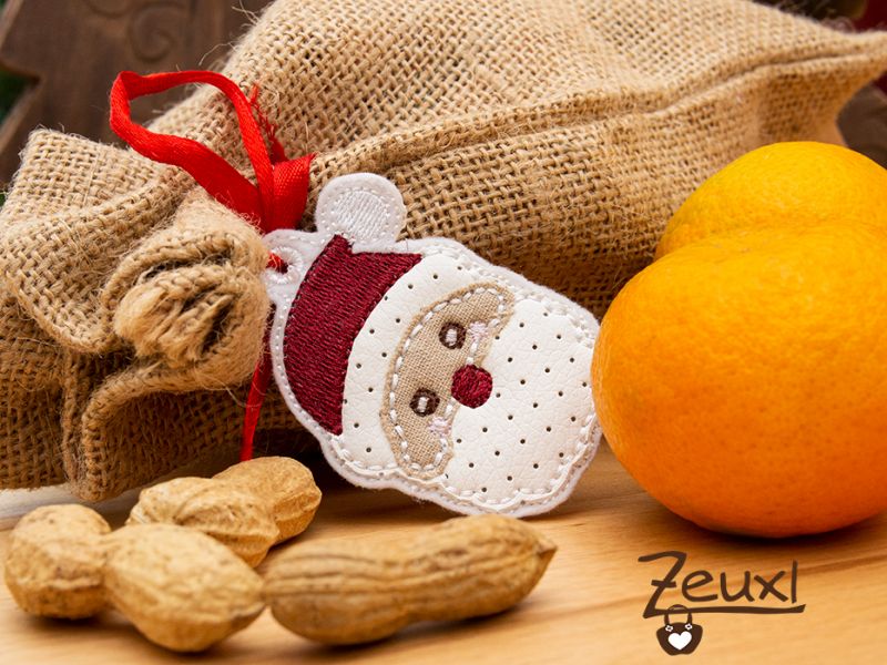 Nadine hat in ihrem Adventskalender nämlich auch einen Nikolausanhänger, den ich ebenso probestickte. Der macht sich gut an dem traditionell rustikalen Rupfensack.