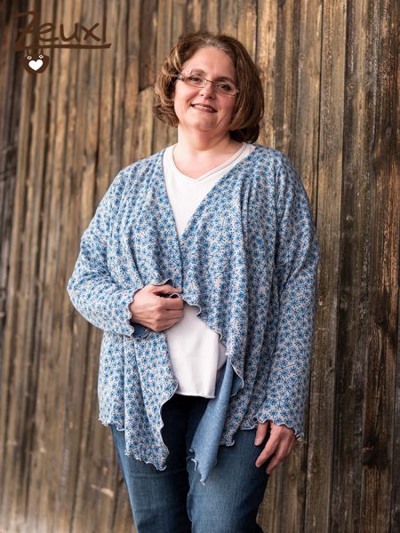 Statt die Margarete zu säumen kann auch eingefasst werden oder die Stoffkannten werden einfach nicht versäubert. Im Freebook wird alles super gut erklärt. Die Jacke kann mit langen oder mit trendigen 3/4-Ärmel genäht werden, ebenso wäre ganz ohne Ärmel eine weitere Option.