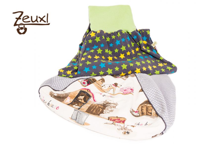 Da sich meine Cousine von mir eine Bequemhose wünschte (die Tasche war meine Idee), hat sie diese natürlich auch bekommen. Sozusagen eine Babypumhose für Erwachsene. Den Stoff mit den Sternen hat sie selbst ausgesucht und ich verwendete dafür den Moira Schnitt von Mamu Design. Dieser Schnitt war tatsächlich mein erster Kaufschnitt überhaupt. Nach diesem Schnitt hatte ich unserm Buben die ersten selbst genähten Hosen gemacht. Eigentlich könnte ich den Schnitt auch mal wieder für ihn verwenden…
