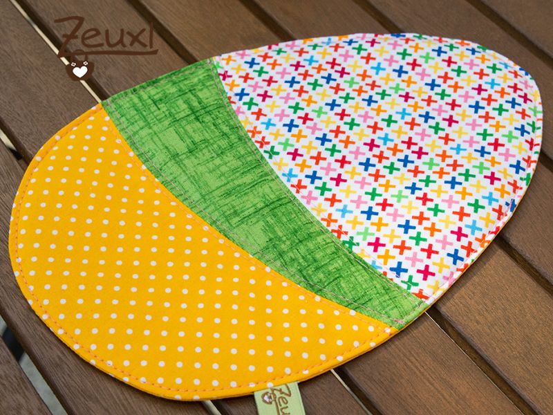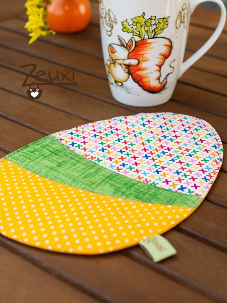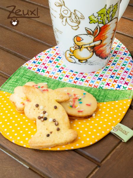 Bevor die Ostertage um sind möchte ich noch meinen letzten Eiki zeigen. Ganz ohne Set, als Einzelstück sozusagen. Die Stoffe sind ähnlich dem Türhänger (hier), aber aus Eiki wurde diesmal ein Mug Rug, also ein Untersetzer.