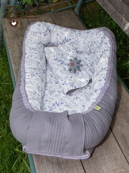 Um Babys die Geborgenheit zu geben, die sie von Mamas Bauch kennen und welche die jungen Babys oft noch suchen, aber auch als Begrenzung, wenn das Baby anfängt sich zu drehen, als Liegekissen auf dem Sofa beispielsweise, scheint mir solch ein Babynest doch sinnvoll. Ebenso als Schutz vor Zugluft und um eine Liegefläche für unterwegs in petto zu haben. Ob als gewohnter Schlafplatz in fremder Umgebung oder als Wickelplatz „für unterwegs“.