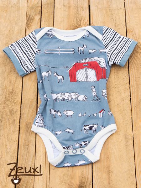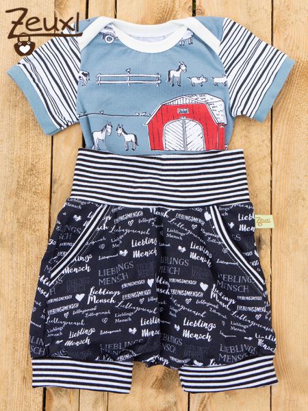 Einmal nähte ich dem Klimperklein Body in Kurzarm aus dem schönen Onkel Georg's Bauernhof von Lillestoff und dazu gab es passend eine Checkerhose in kurz, ebenfalls von Klimperklein, aus dem Lieblingsmensch-Jersey, der schon so lange auf den Einsatz wartet. Diese Hose passt natürlich auch zu den anderen Bodys.