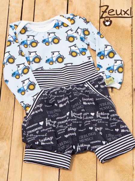Dazu noch zwei Langarmbodys, alles übrigens in Größe 80. Für den kleinen Nachwuchslandwirt durften Traktoren keinesfalls fehlen.