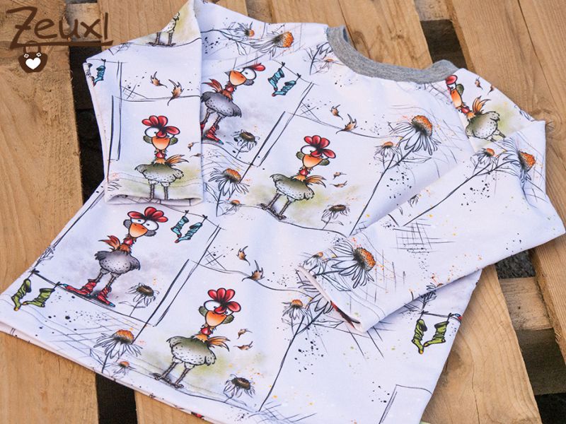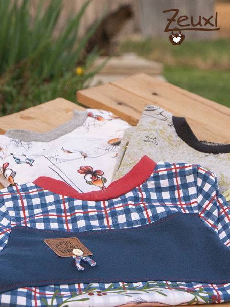 Zusätzlich gab es noch zwei weitere Shirts für den kleinen Mann. Einmal aus dem Hühnerstoff, den ich auch schon für unseren Buben (hier) vernäht hatte. Hier verwendete ich mal wieder das Autumn Rockers KIDS Schnittmuster von Mama hoch zwei. Das ich schon in der passenden Größe 104 vorbereitet hatte, weil ich es vor langer Zeit schon für unseren Buben genäht und ihm gerne angezogen hatte.