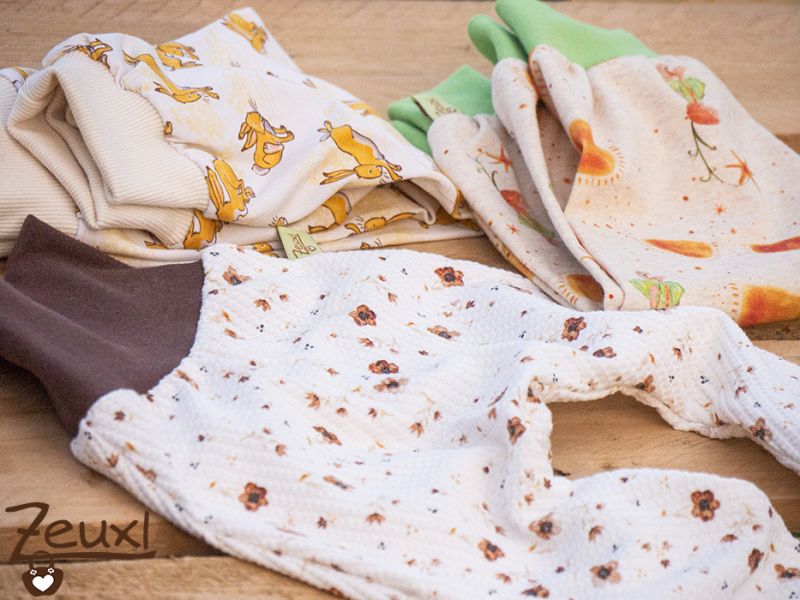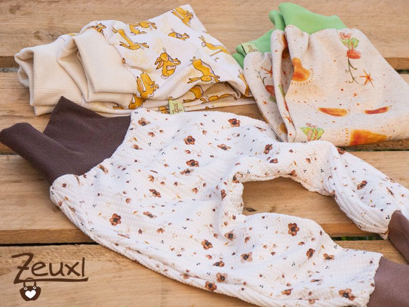 Aber diese Sachen in 104 waren nicht die einzige Kinderkleidung, die ich zu Ostern verschenkte. Ich benähte noch ein kleines Mäuschen in Größe 74. Da entschied ich mich für Pobeisser-Pumphosen. Die sind in diesem Alter einfach super praktisch und lassen sich mit einfachen Shirts oder auch Bodys tragen – je nachdem wie warm es ist.
