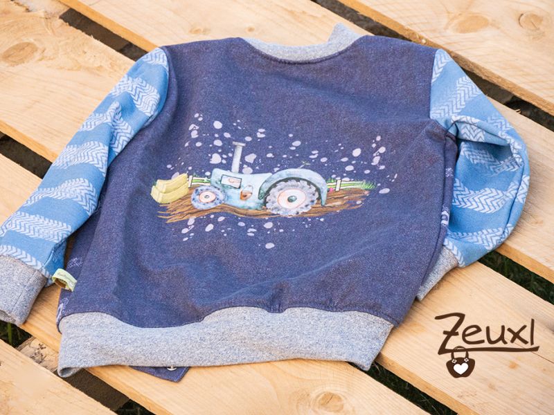 Passend zur Hose gab es noch eine Jacke. Der kleine Mann hatte schon vor zwei Jahren eine Bulldogjacke (hier) von mir bekommen, die zwar echt lange gepasst hat, aber nun doch zu klein wurde. Ich wünsche dem Traktorfreund, dass er an seiner neue Jacke auch so lange Freude hat.