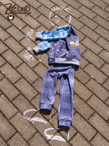 Dazu gab es eine Hose nach dem Schnitt der Jogginghose von Klimperklein aus dem Buch Nähen mit Jersey. Die macht jede Bewegung mit, was ich bei Kindern immer wichtig finde, und ist trotzdem keine Pumphose. Denn das pumpige mag nicht jeder oder nicht jeder immer.