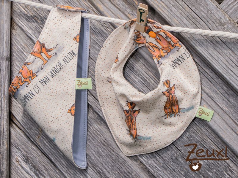 Von dem Lillestoff Jersey Kitty Garden hatte ich noch so viel Stoff übrig, dass zur Hose noch ein Halstuch raussprang. Zu diesem Tuch und der Hose passen farblich beide Bodys gut dazu.
