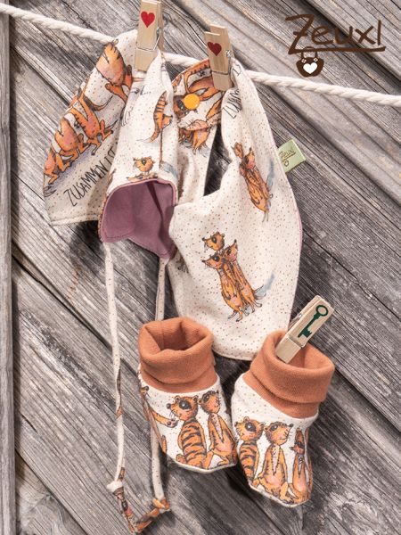 Aus dem allerletzten Rest des Gemeinsam ist man weniger allein Jerseys (ebenfalls von Lillestoff) entstand eine Hose plus Set aus Mütze und Schuhe für das kleine Mädchen und sie sowie auch der große Bruder bekamen noch ein Halstuch aus diesem Stoff. Der Name und das Design passen super für Geschwister.