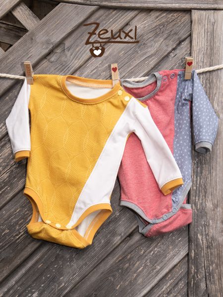 Zu den Hosen gibt es wieder Bodys. Der Tilt-Body von Kleiner Polli Klecks ist ein Schnitt, der als E-Book auf meinem Computer gespeichert ist, den ich aber bisher noch nie genäht hatte. Er macht durch seine Teilung echt was her und gerade im Sommer, wenn darüber kein Shirt mehr getragen werden braucht, ist er schön anzusehen. Deswegen konnte ich nicht anders und wollte den Tilt Body ausprobieren.