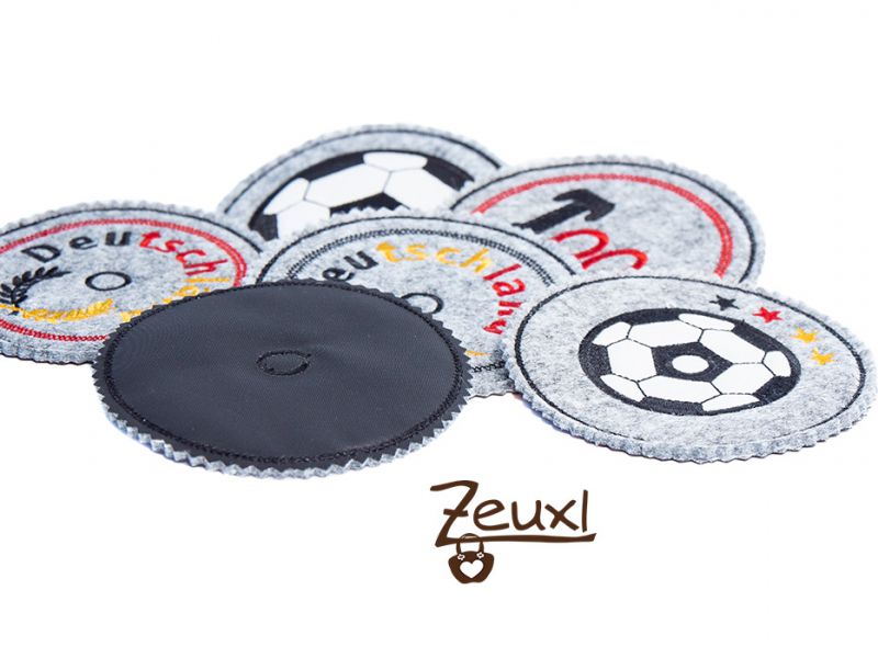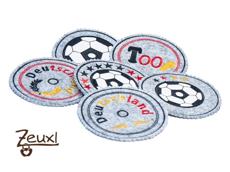 Die Stickdatei gibt es bei Grete vom Ländle und ist auch nicht ganz neu. Denn eigentlich handelt es sich um eine Datei zur Europameisterschaft. Allerdings ist das nur auf einem der 15 Motive zu erkennen. Denn dort sind die Jahreszahlen vermerkt. Die in the hoop Stickdatei ist nicht nur als Untersetzer verwendbar. Jeder Untersetzer verfügt über ein umsticktes Loch, ähnlich einer gestickten Öse, welches mit einer spitzen Schere aufgeschnitten werden kann. Durch dieses Loch kann ein Trinkhalm gesteckt werden und dann wird aus dem Untersetzer eine Glasabdeckung für draußen.