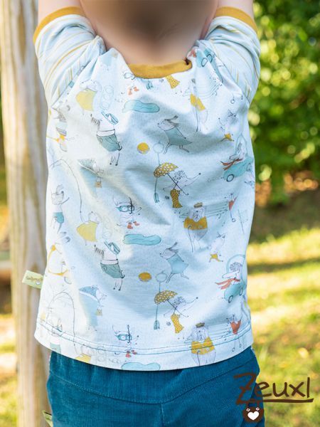 Für oben wollte ich nun endlich mal das tolle Paneel von Tolimoli vernähen. Dieses trifft mit seinen diversen Kombistoffen ebenso genau meinen Farb-Nerv ;-). Als Schnittmuster verwendete ich das Shirt ohne die Brusttasche aus dem Klimperklein Buch. Ich wollte einen ganz schlichten Schnitt, bei dem der schöne Stoff zur Geltung kommt.