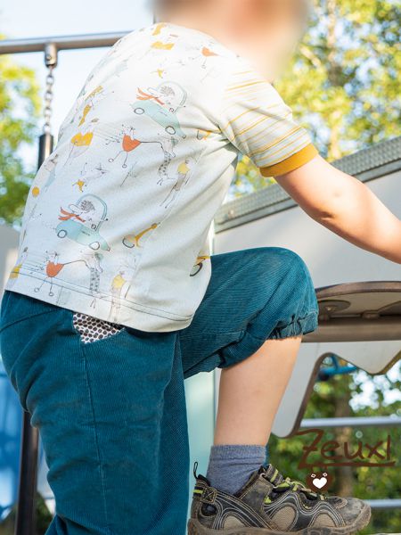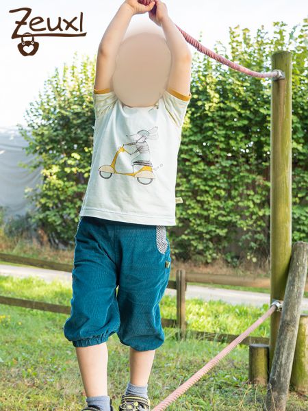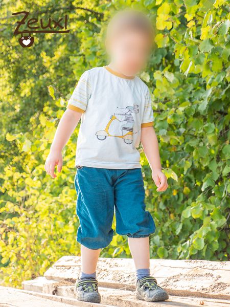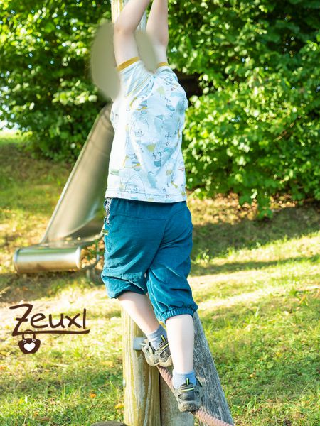 Auch wenn ich dieses Set erst relativ spät im Sommer genäht hatte, hat es sich dennoch gelohnt. Denn der Sommer drehte auch im September und Oktober nochmal voll auf. So konnte der Bub die Hose noch gut nutzen.