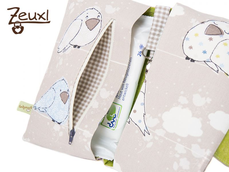 Natürlich braucht eine Windeltasche Platz für Windeln und klar sollen Feuchttücher auch untergebracht werden. Ich nehme gerne die kleinen Feuchttücherpackungen, da mir sonst die Feuchttücher immer austrocknen. Zudem finde ich ein kleines Reißverschlusstäschchen für Cremes beispielsweise recht praktisch.